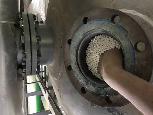 活性氧化铝吸附剂安装要遵循均匀、紧密和不留死角的原则。活性氧化铝是颗粒物质,随着运转的时间增长,吸附剂的密实度也会增加,这样就会在吸附塔内产生空隙,空隙一旦出现,吸附剂就会在吸附塔内产生摩擦,这样就会造成吸附剂损毁,出现冒粉现象。如果不及时处理,会越来越严重,导致后续配件堵塞或者损毁。所以专业的装填指导非常必要。