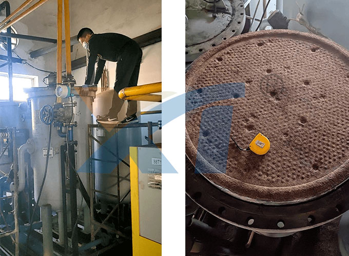 鑫淘前往天津,为合作客户一家制药公司提供碳分子筛(CMS) 安装指导。主要原因是客户制氮机中的空压机被水淹,导致空压机生锈和故障。