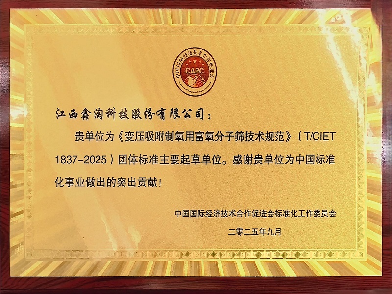 近期,由中国国际经济技术合作促进会标准化工作委员会主导,江西鑫淘科技股份有限公司作为主要起草单位参与制定的《变压吸附制氧用富氧分子筛技术规范》(T/CIET 1837-2025)团体标准正式发布实施。公司董事长刘建斌深度参与标准起草全流程,凭借多年行业技术积淀,为规范行业发展、提升产品品质贡献核心力量,彰显了鑫淘科技在富氧分子筛领域的技术引领地位。