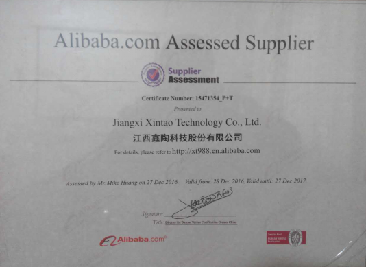 2016年12月27日,鑫陶迎来了BV认证人员,经过一整天的验厂、文件、资质现场验证,鑫陶BV证书的有效性延续一年,从2016.12.28至2017.12.27。