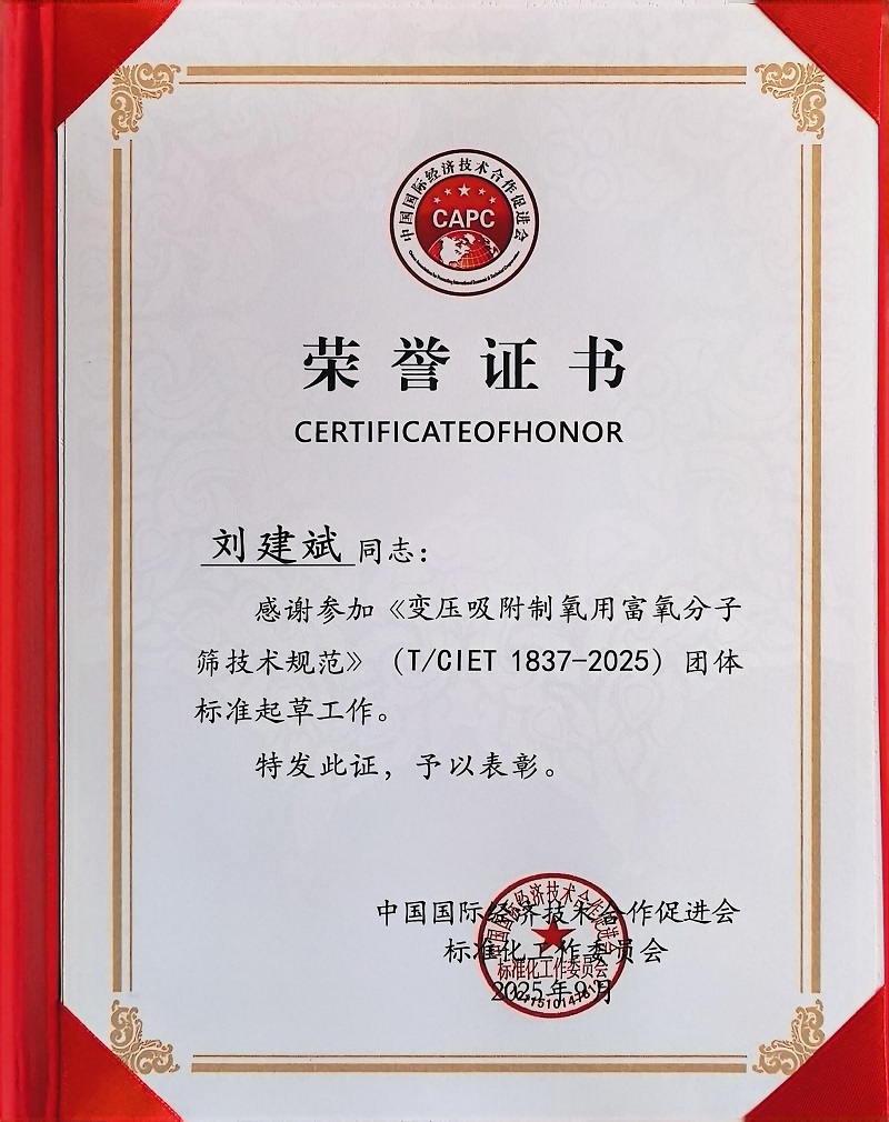 近期,由中国国际经济技术合作促进会标准化工作委员会主导,江西鑫淘科技股份有限公司作为主要起草单位参与制定的《变压吸附制氧用富氧分子筛技术规范》(T/CIET 1837-2025)团体标准正式发布实施。公司董事长刘建斌深度参与标准起草全流程,凭借多年行业技术积淀,为规范行业发展、提升产品品质贡献核心力量,彰显了鑫淘科技在富氧分子筛领域的技术引领地位。